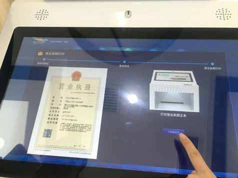就像大伙兒在火車站取票一樣,點(diǎn)擊營業(yè)執(zhí)照打印后,把身份證放在識(shí)別區(qū),系統(tǒng)立刻就能識(shí)別出你旗下的企業(yè)。
