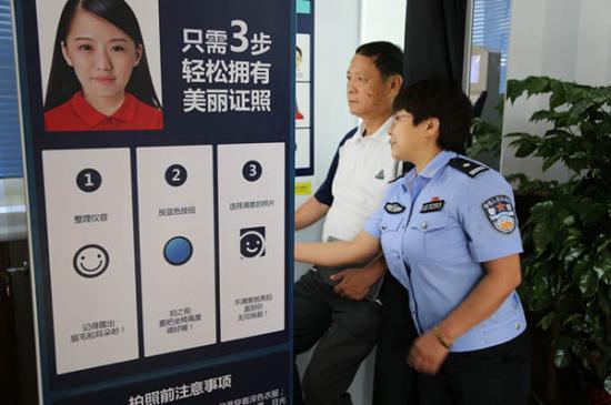 前來辦理身份證業(yè)務(wù)的市民,可先到窗口核實(shí)身份,然后自助拍攝證件照。首先,選擇人口戶籍類型,隨后按照提示信息,調(diào)節(jié)座椅高度,將面部輪廓置于虛線框內(nèi),觸摸拍照鍵即可進(jìn)行拍攝,拍照完成內(nèi)容顯示在屏幕上,拍攝者可以挑選最好的照片為止。最后付費(fèi)打印。