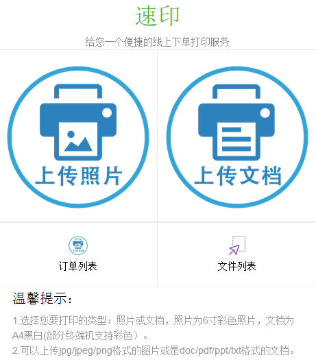 文檔編輯完成——點(diǎn)擊打印按鈕——在云端服務(wù)平臺(tái)上傳文件——到自助設(shè)備刷卡取文件。