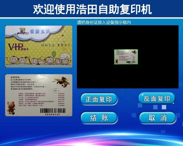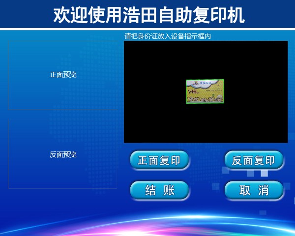 把身份證反面放入掃描框,點擊【反面復(fù)印】,左側(cè)顯示完成后可點擊【結(jié)賬】
