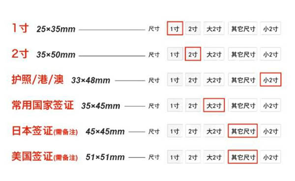標準寸照(1寸照片大小:2.5cm*3.5cm;2寸照片大小:3.5cm * 5.3cm;小2寸照片大小:3.2cm *4.0cm;)
