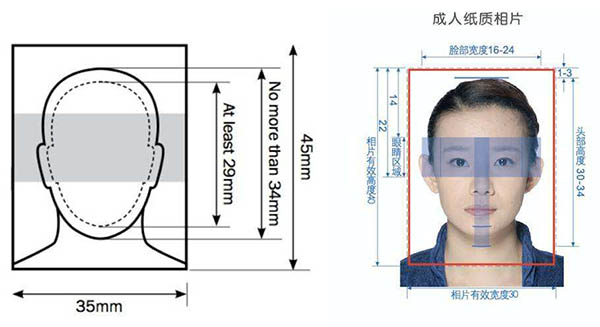 出入境證件相片(紙質相片33㎜×48㎜;數碼相片寬354-480px,高472-640px,寬高比為3:4)