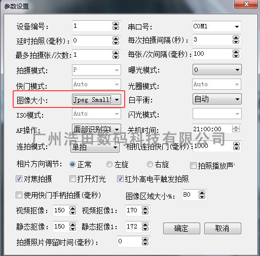 4. 圖像大小參數(shù)調(diào)至{Jpeg samll}可避免界面拍照時(shí)出現(xiàn)卡頓