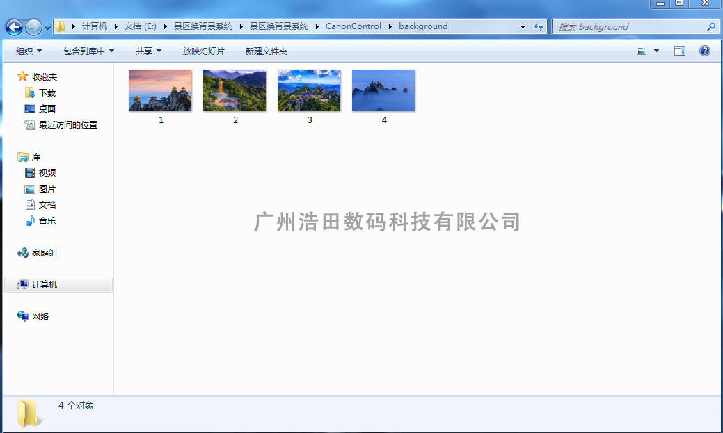 5. 在文件夾(景區(qū)換背景系統(tǒng)→CanonControl→background)處可自由更換四張背景圖片