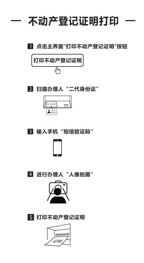 只需憑本人身份證,即可在自助打印證明終端上按照提示信息進行操作,打印對應不動產登記證明。證明打印完畢后,系統自動記錄領證人照片及領證信息。
